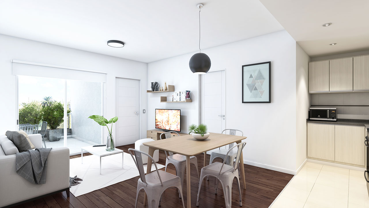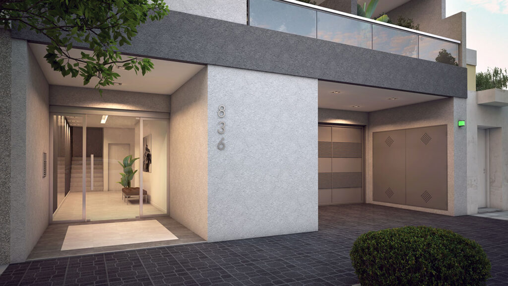 Edificio de cuatro pisos con ascensor, 11 cocheras, 4 departamentos por piso y en el cuarto piso dos monoambientes divisibles.